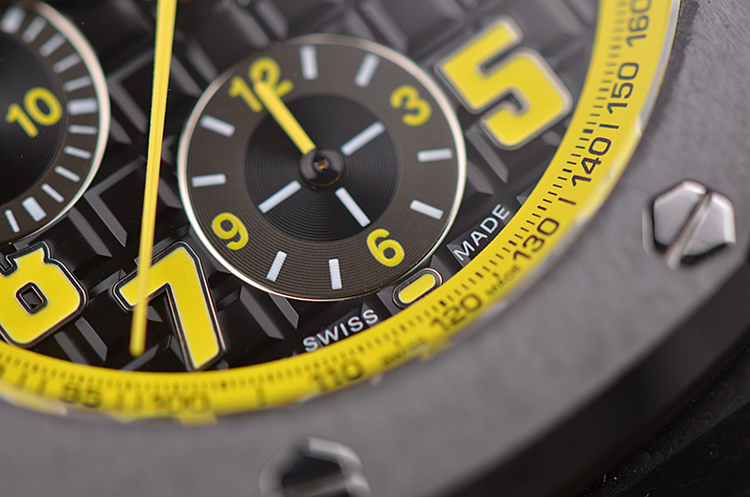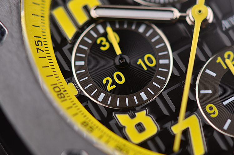 表盘:立体黑黄双色计时表盘