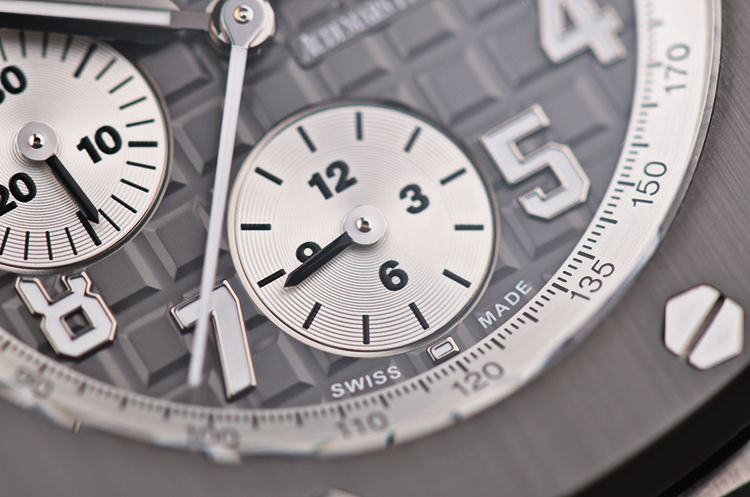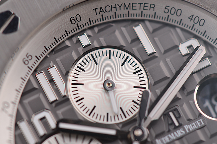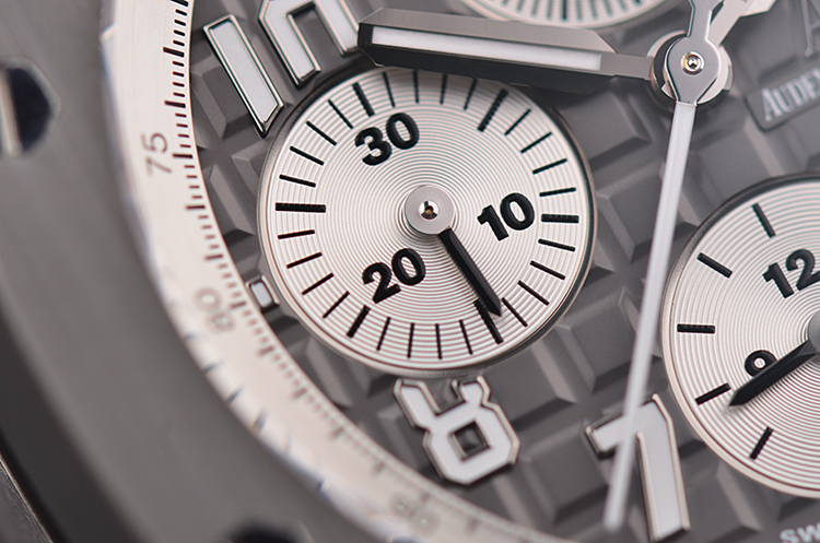 表盘:立体深灰色华夫格计时表盘