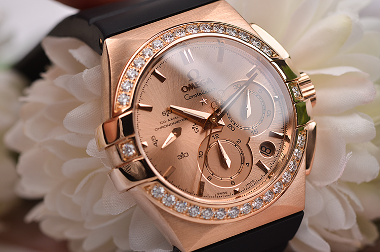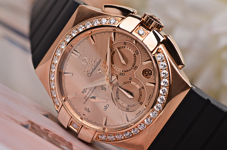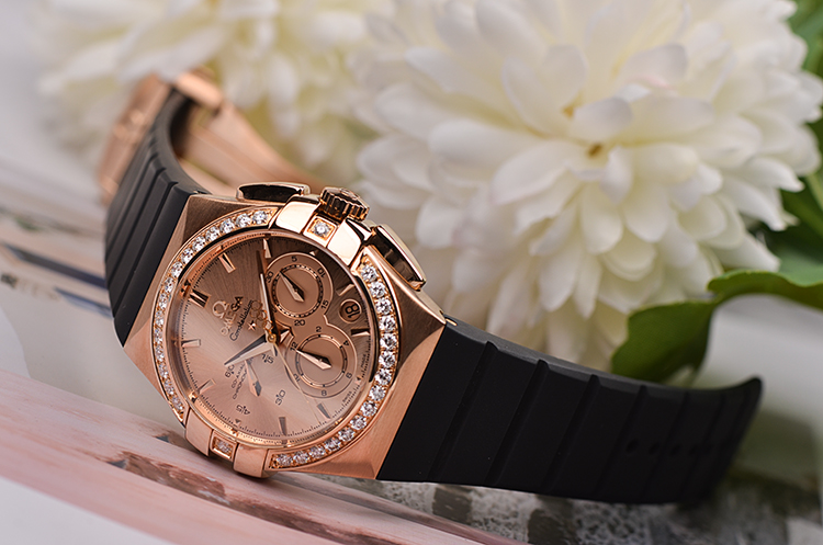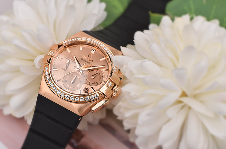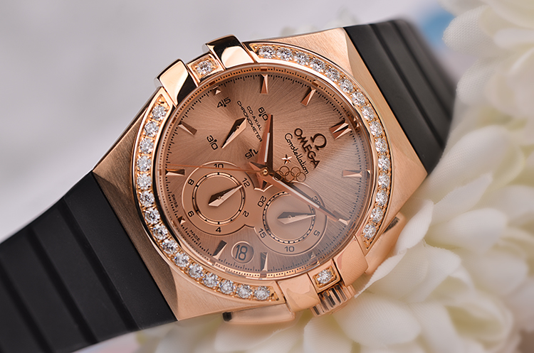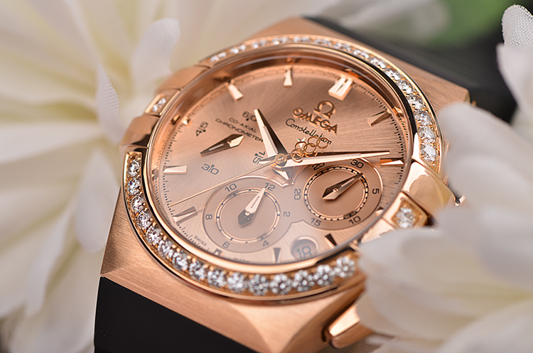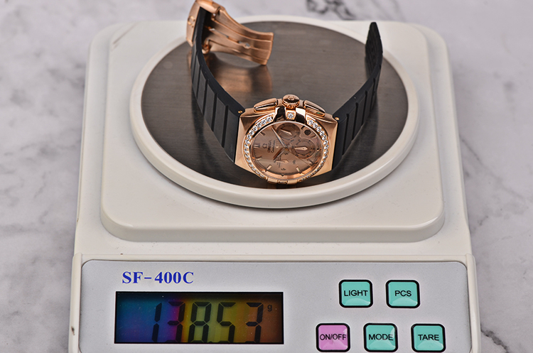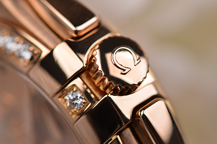 表壳:18K玫瑰金镶钻(表框原厂镶嵌32颗VVS级天然美钻,共计约1.23克拉)。