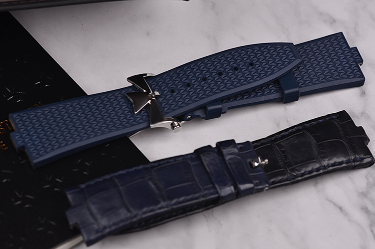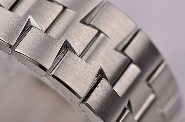 表带:精钢,另有一条原装深蓝色胶带成色极新,一条原装深蓝色鳄鱼皮表带成色极新,一副原装折叠扣。共3条原装表带,钢带腕周约200MM。
