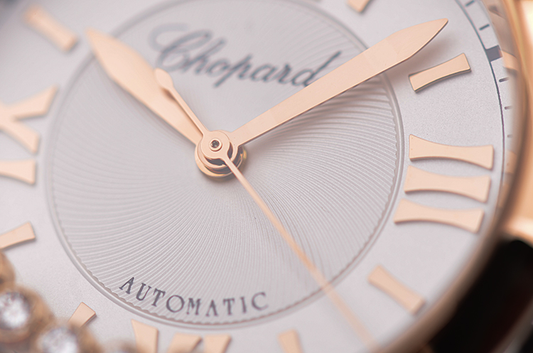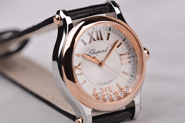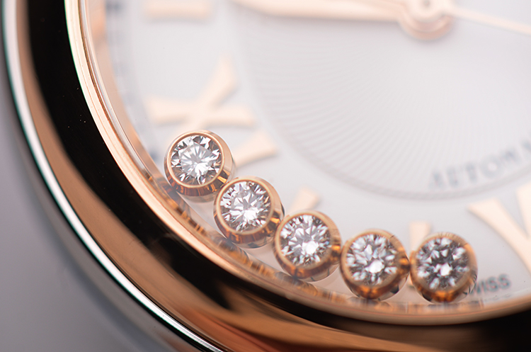 表盘:立体银白色表盘,五颗活动钻,约0.14克拉