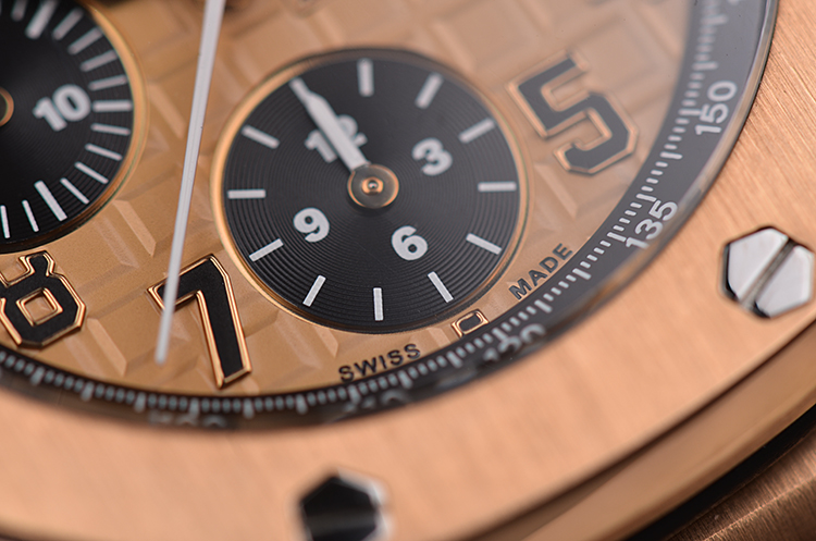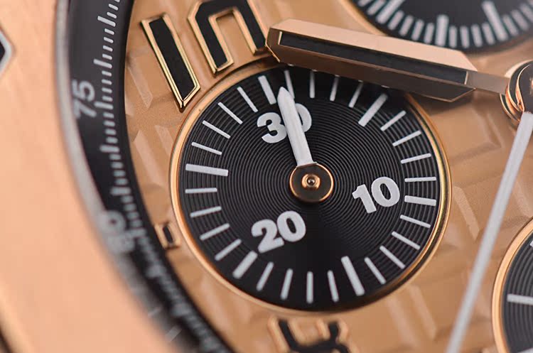 表盘:立体玫瑰金色华夫格表盘,黑色小表盘