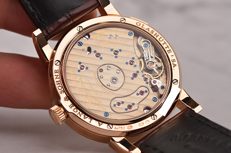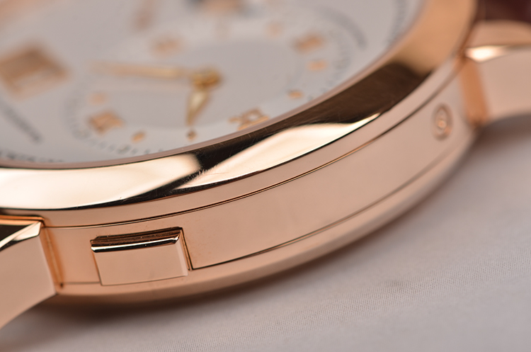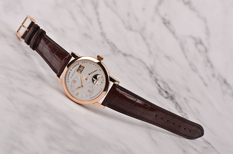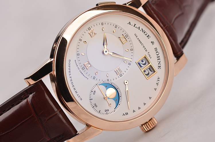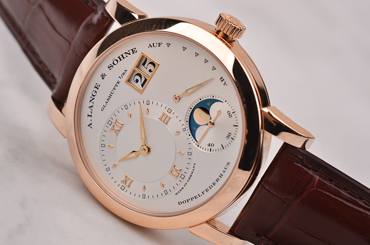 朗格1系列玫瑰金偏心大日历动显月相手上链男表