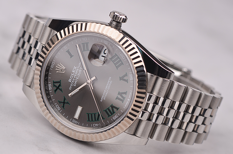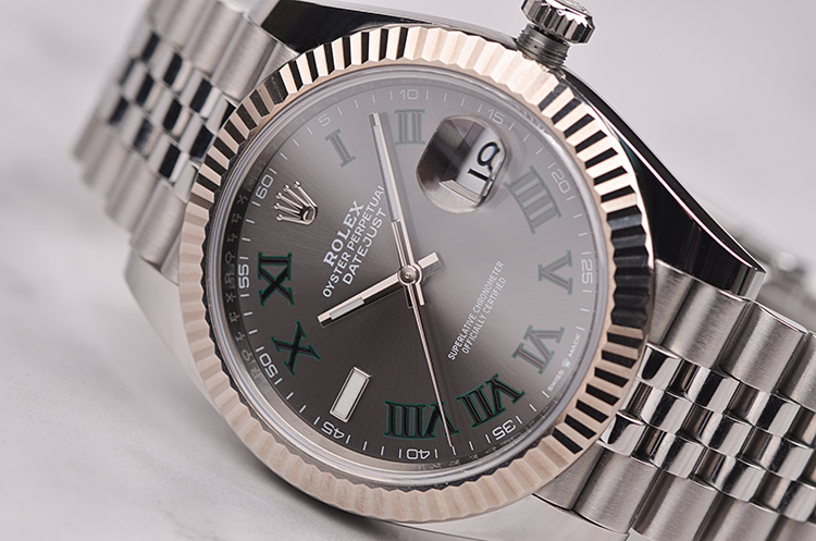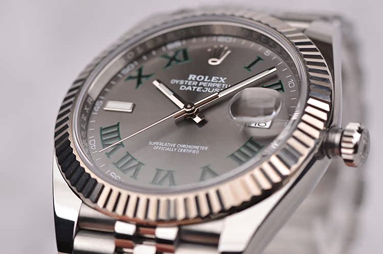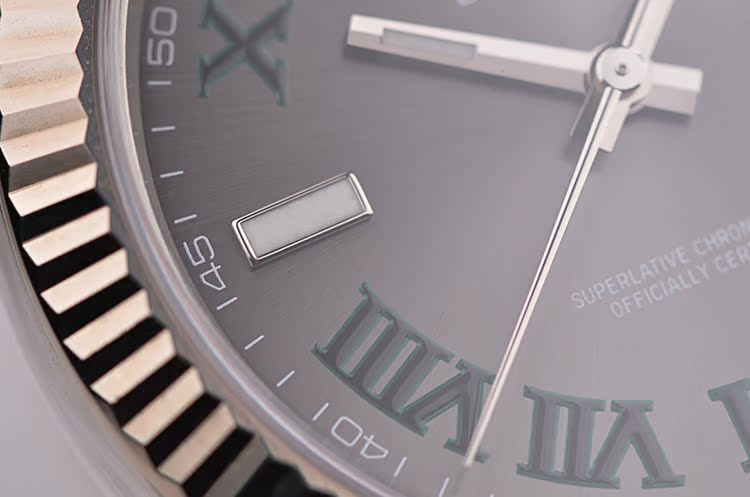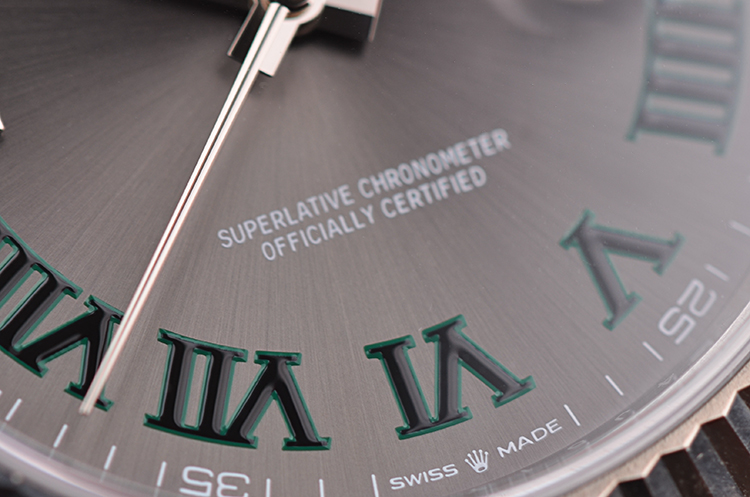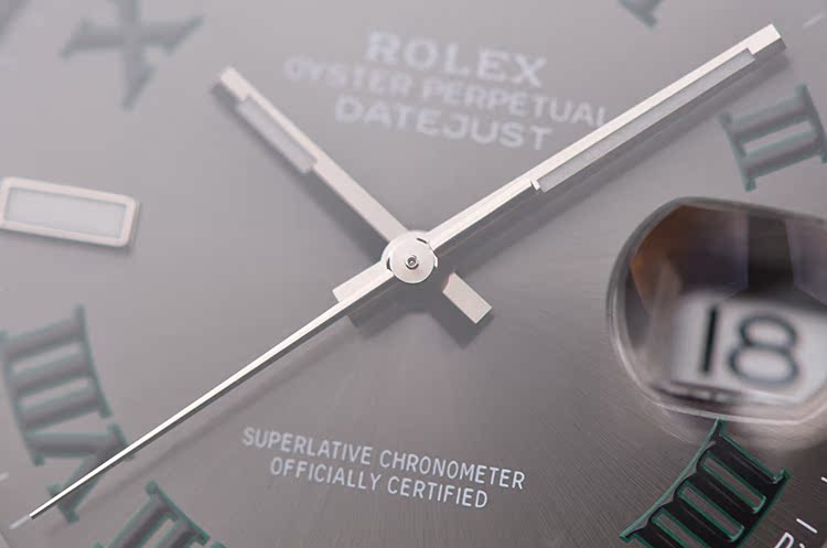 表盘:立体灰色面盘,绿色罗马数字刻度