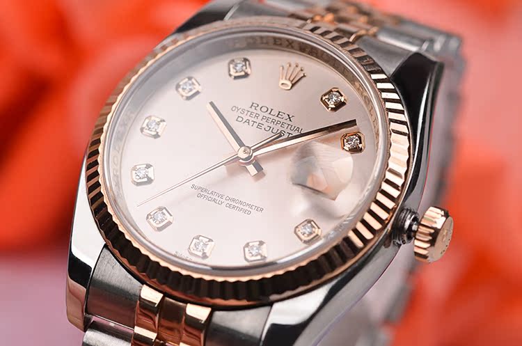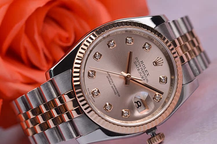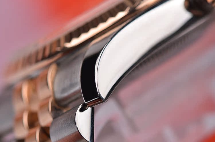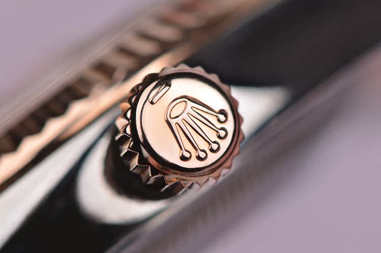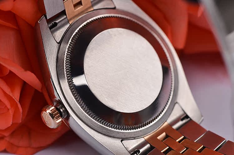 表壳:904L精钢表壳,18K玫瑰金表圈、表冠
