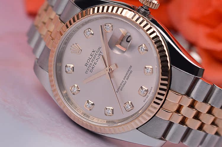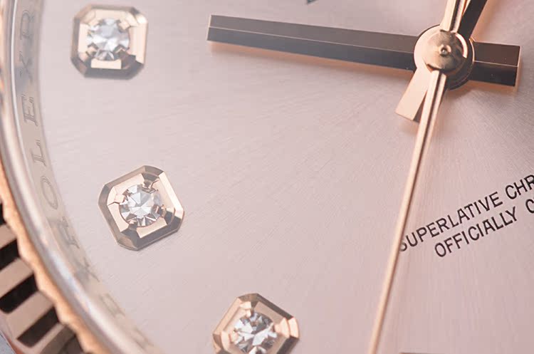 表盘:立体粉色大包钻刻度面盘,玫瑰金指针
