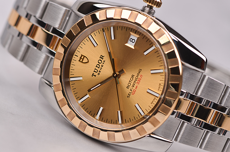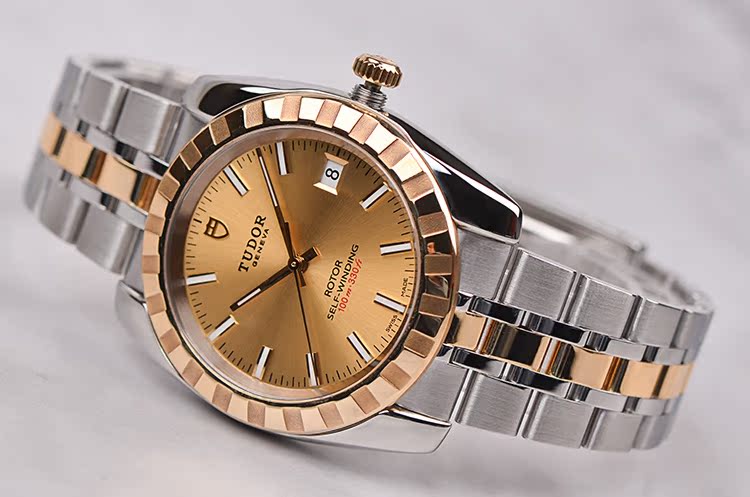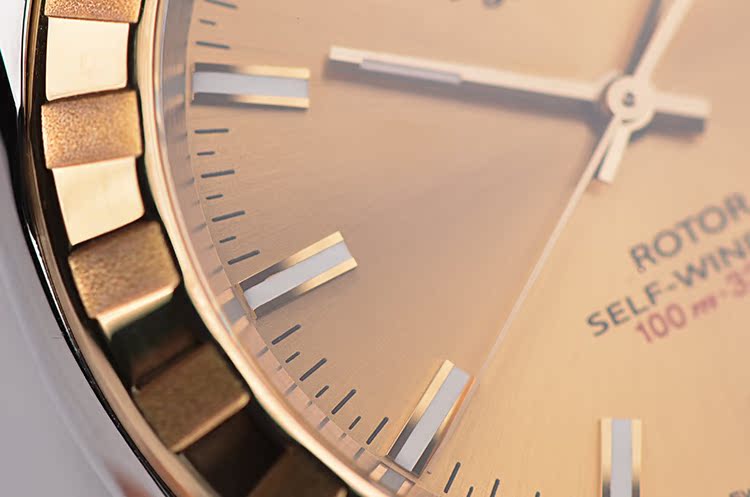 表盘:立体香槟金色面盘,夜光刻度及指针