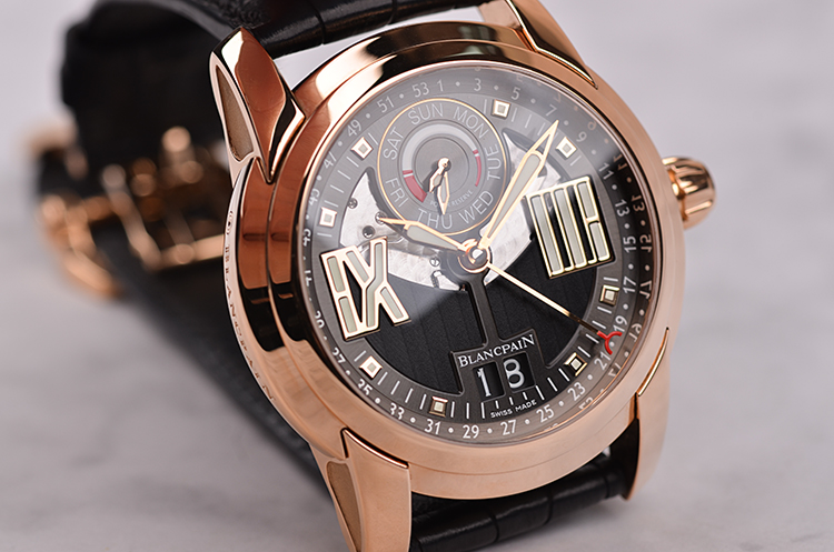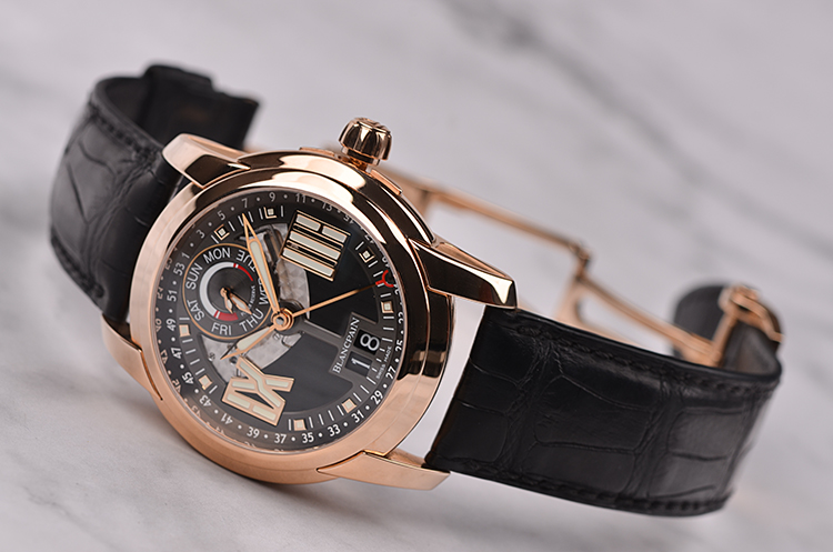 进化系列玫瑰金8日链动显双历自动机械折叠扣皮带男表