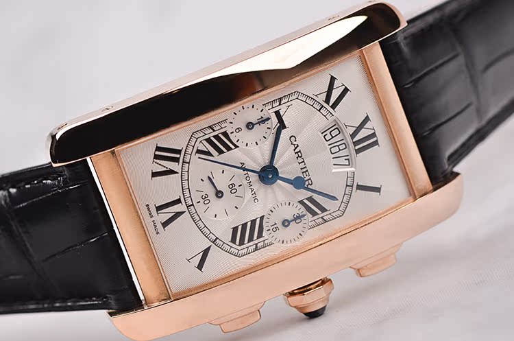 美国坦克最大号玫瑰金计时日历自动机械折叠扣男表