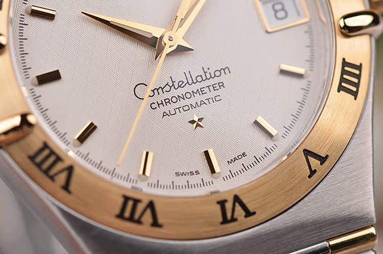 星座系列黄金及钢大三针日历自动机械男表