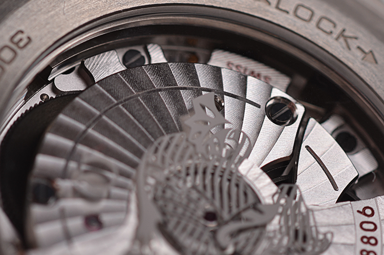 欧米茄自产Cal.8806型机芯,自动上链同轴机芯。瑞士联邦计量研究院(METAS)认证至臻天文台机芯,抵抗高达15,000高斯的强磁场。搭载带有硅游丝的无卡度游丝摆轮,双向自动上链系统。镀铑自动陀和夹板,表面经独特奢华处理,以及阿拉伯风格的日内瓦波纹的打磨装饰。35钻,摆频25200,动力储备约55小时。走时状态极嘉。