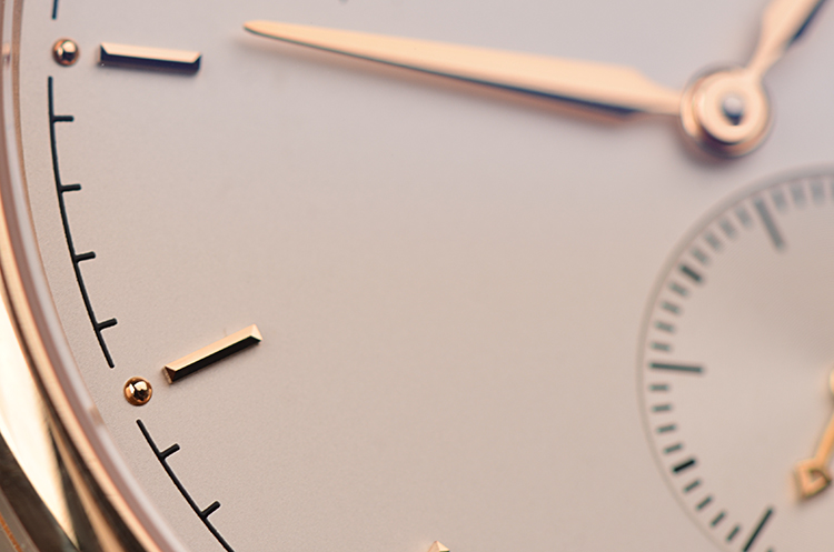 表盘:立体银白色表盘,玫瑰金刻度及指针