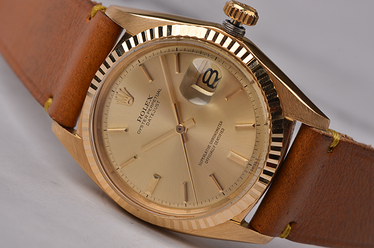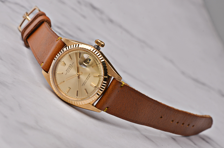 表带:后配棕色牛皮表带成色极新 后配镀金表扣