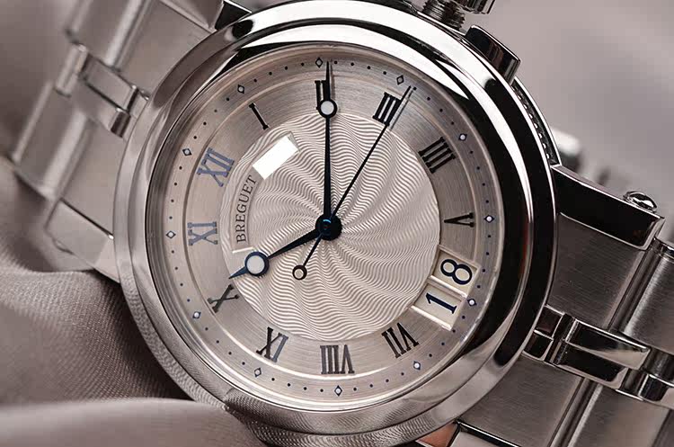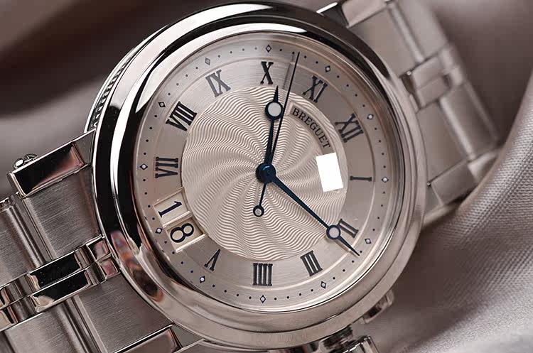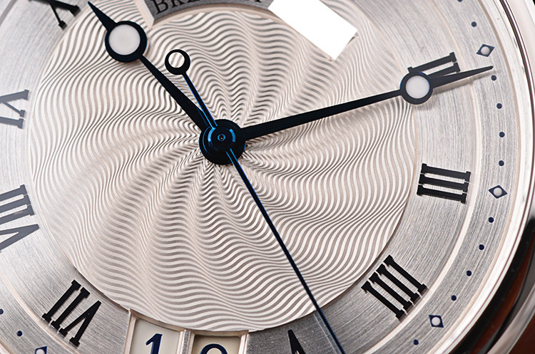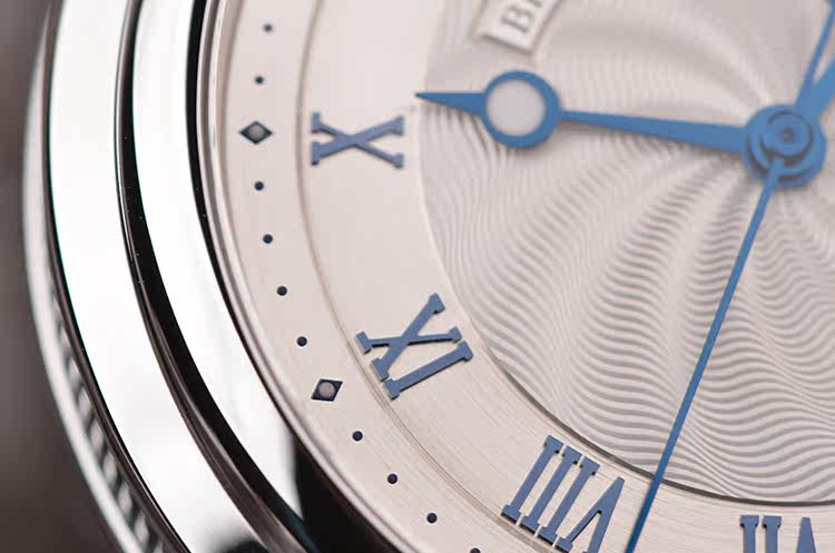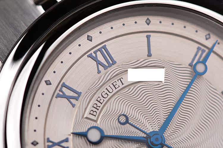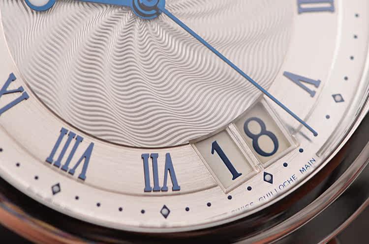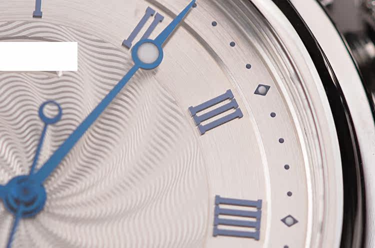 表盘:白金镀银镌刻表盘,蓝钢阿拉伯数字刻度及指针
