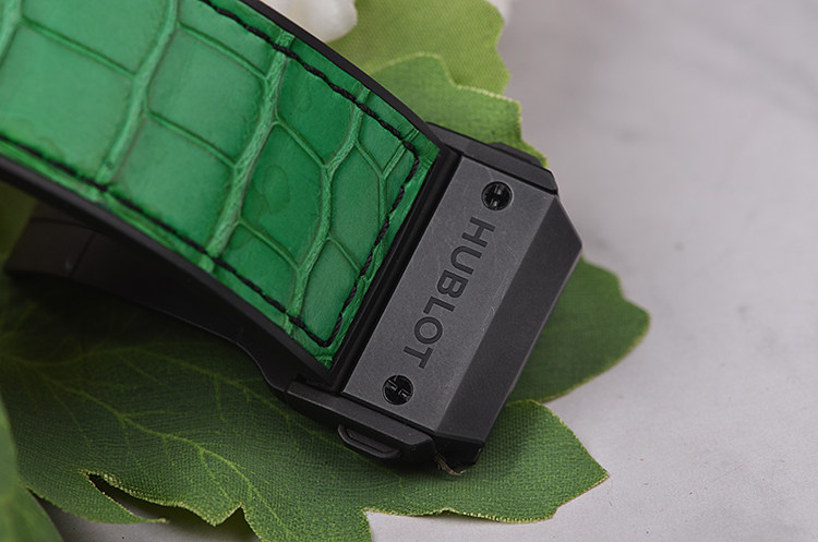 表带:原厂绿色鳄鱼皮内衬橡胶表带成色很新。