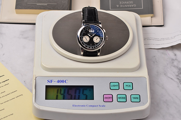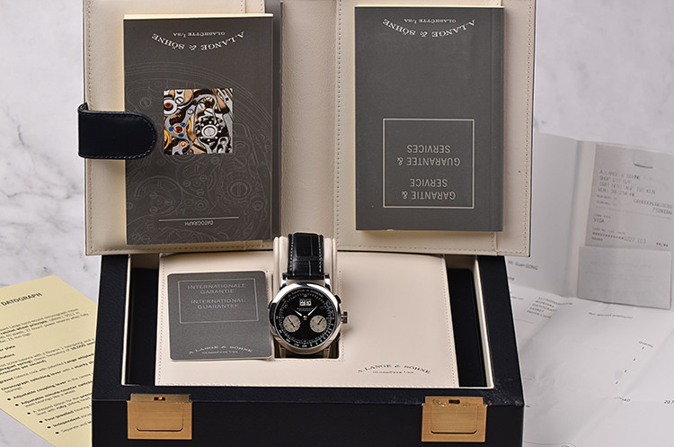 附件:原装表盒,擦表布,说明书,服务手册,保修卡(2003年10月),该表于2019年5月在香港朗格官方售后服务中心做了全面保养,可以保修至2021年5月。有保养发票。整表重约145克。