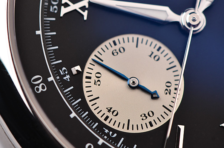 表盘:立体黑色计时表盘,白金罗马数字刻度及指针