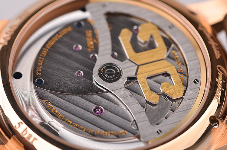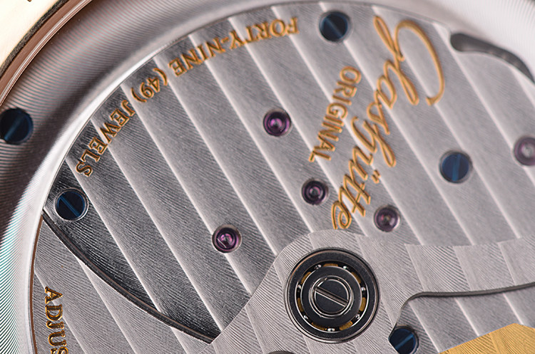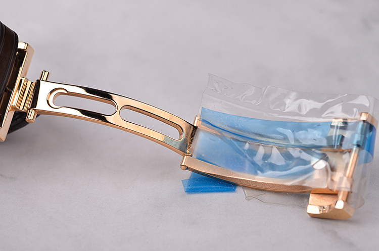 机芯:自动机械 CAL.91-02机芯,反做双鹅颈微调,金边配重镂空自动陀,42小时动力储备