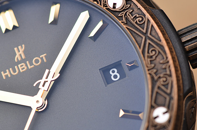 宇舶自产CAL.HUB1112型机芯,自动机械,极其精致日内瓦条纹打磨,25钻,摆频28800,动力储备约42小时。