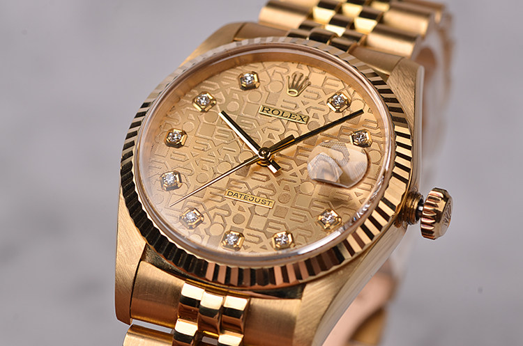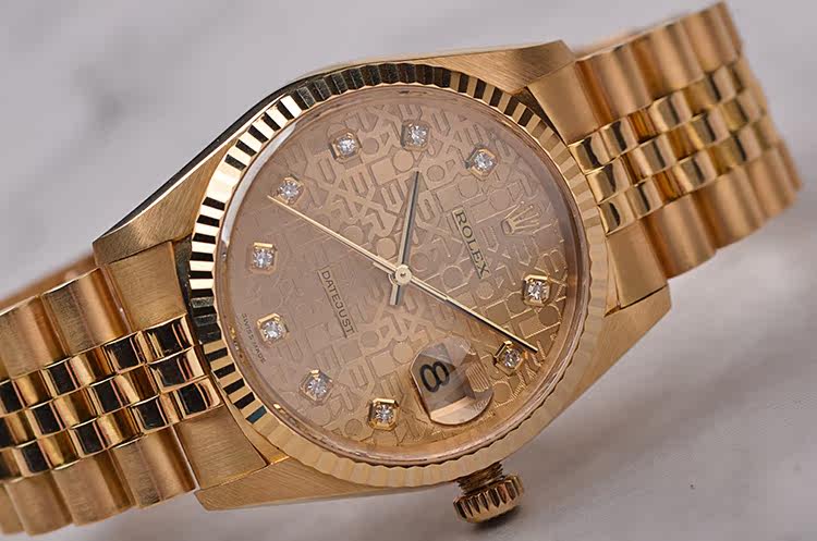 表盘:立体金色电脑面盘,10颗原厂钻石时标
