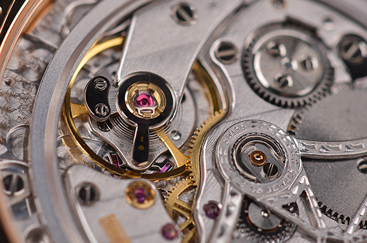 机芯:自动机械 Cal.1120/2型机芯 ,日内瓦印记,21K金边配重镂空雕花自动陀,40小时动能储备