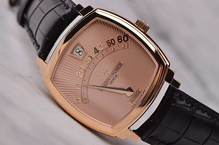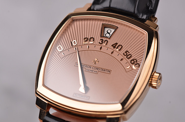 玫瑰金限量版跳时及分钟逆跳自动机械皮带男表