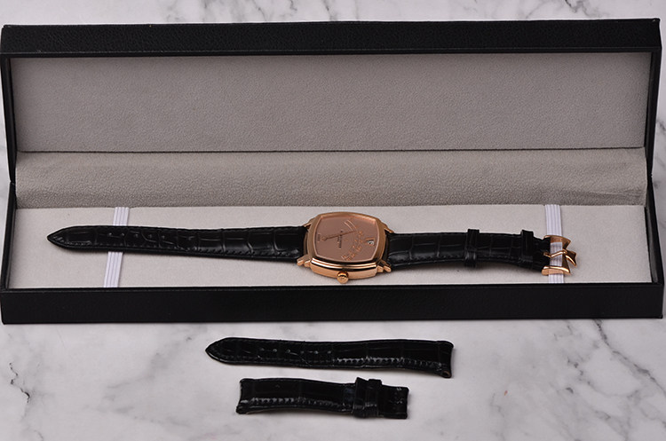 表带:后配全新黑色鳄鱼皮表带,另有一条后配黑色鳄鱼皮表带成色极新,共计2条表带