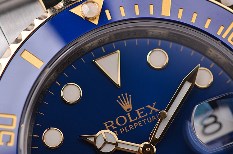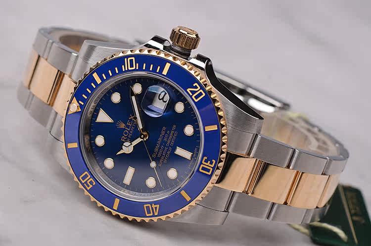 潜航者型黄金及钢蓝面陶瓷圈大三针日历自动男表