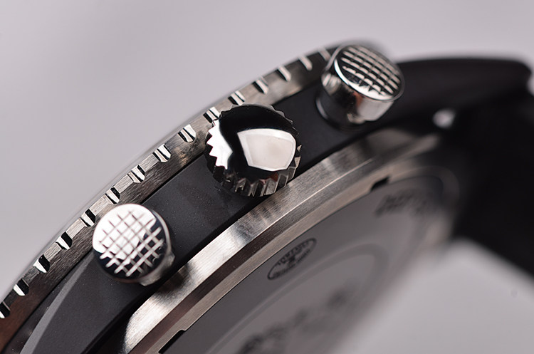 表壳:黑色高科技涂层钛合金表壳,黑陶瓷计时表圈