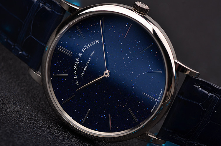 萨克森白金超薄沙金石面3天动储手上链皮带男表