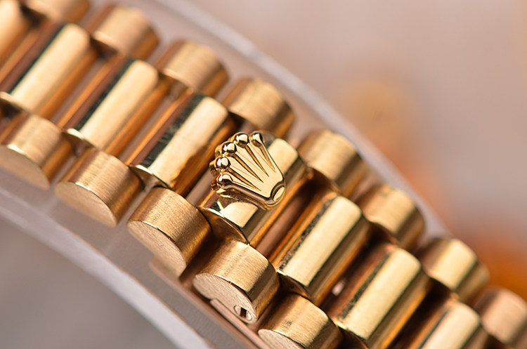18K全黄金表壳及链带,折叠式表扣。黄金三角坑纹表圈,蓝宝石水晶镜面,稀有立体棕色木纹石表盘,黄金刻度及指针,3点位放大镜日历显示,旋入式防水锁把。口径26MM*10MM。防水100M。