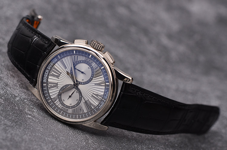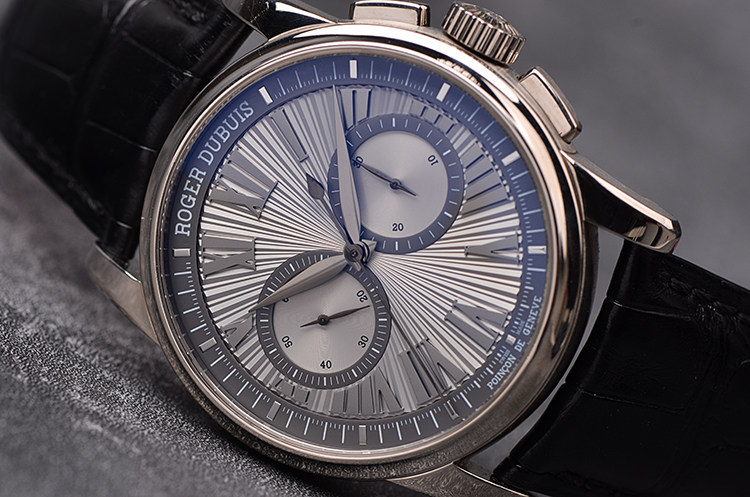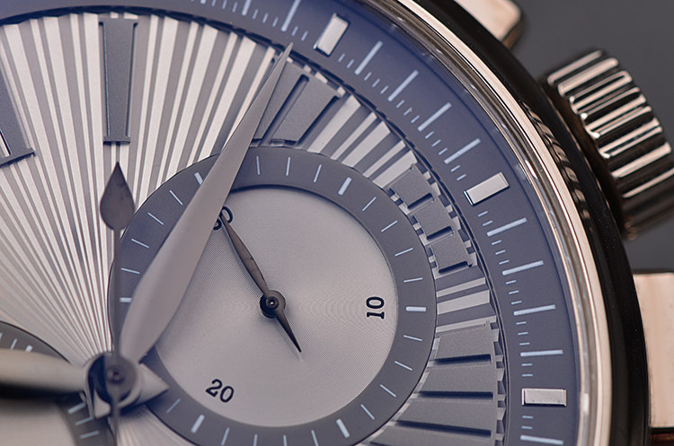 表盘:立体银灰色放射纹计时表盘,罗马数字刻度