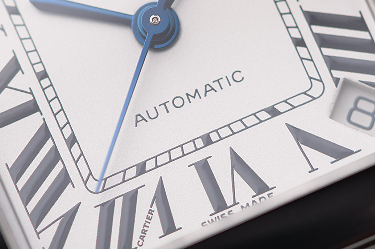 表盘:立体银白色表盘,蓝钢指针,黑色罗马数字刻度