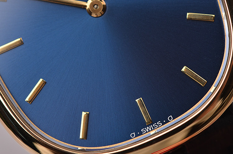 表盘:立体深蓝色日辉纹表盘,黄金刻度及指针