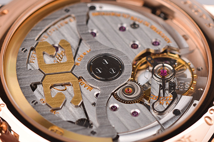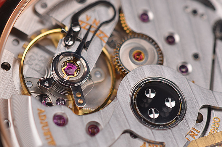 机芯:自动机械 CAL.100-02机芯,鹅颈微调,21K金边配重镂空自动陀,55小时动力储备