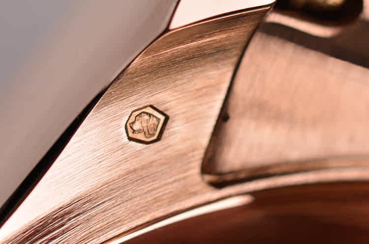 18K永恒玫瑰金表壳及链带,18K永恒玫瑰金折叠式表扣,圣伯纳狗头印记。表圈及表耳后镶天然hao华彩色宝石及钻石。蓝宝石水晶镜面,立体黑色计时表盘,金色计时及秒针小表盘,11颗天然彩色宝石时标。9点位12小时计时,6点位独立小秒针,3点位30分钟计时,旋入式防水表冠。口径40MM*11.8MM。防水100M。
