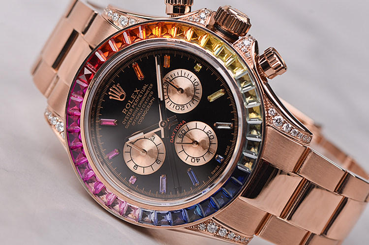 原镶钻款式116595-RBOW0001现在市场的行情价约200万人民币。