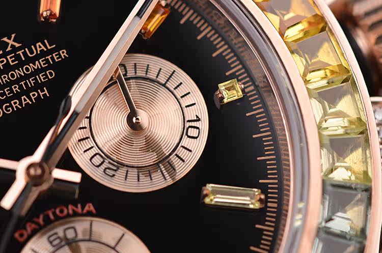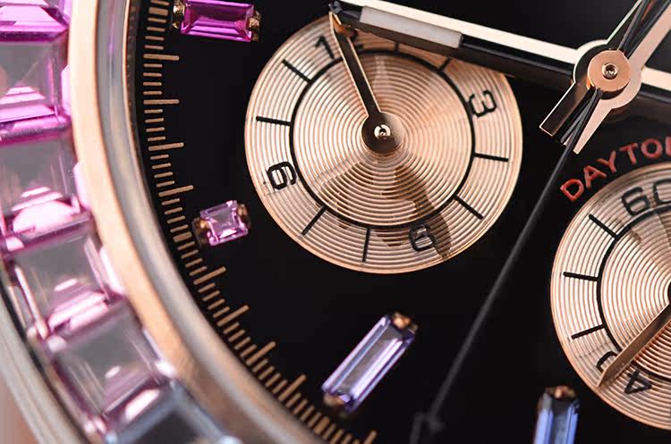 迪通拿系列整体玫瑰金后镶钻彩虹圈计时腕表