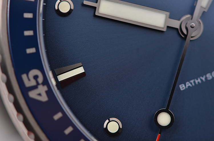 表盘:立体蓝色表盘,夜光刻度及指针