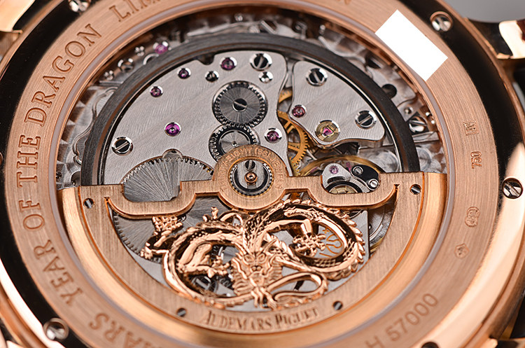 机芯:自动机械 CAL.2120/2802,精雕龙图腾玫瑰金镌刻镂空自动陀,40小时动力储备