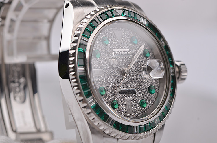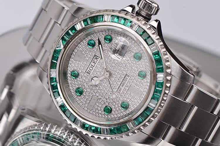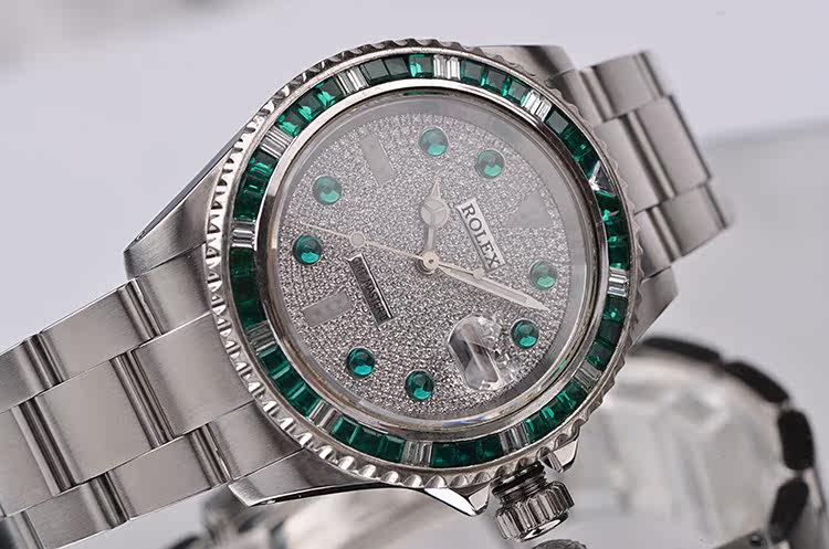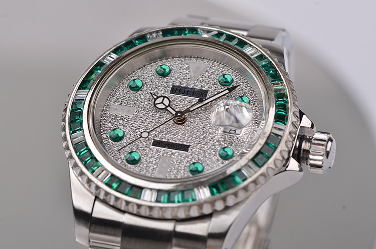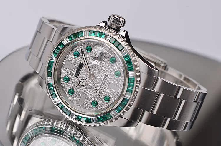 潜航者型精钢后镶绿宝石及钻石自动机械腕表
