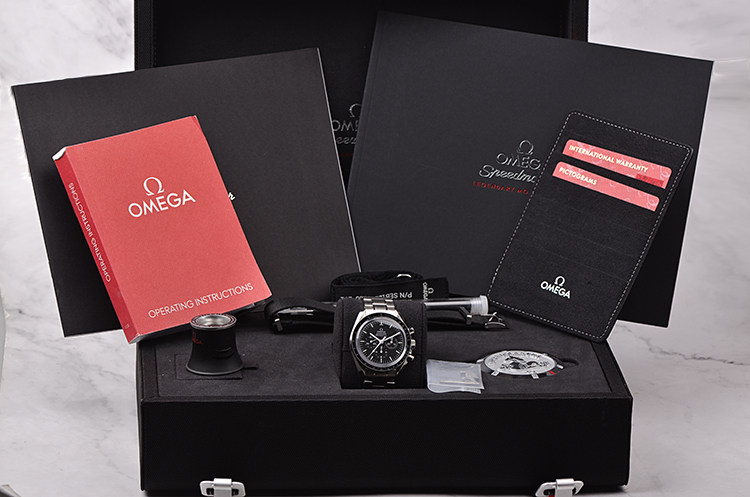 附件: 原厂大表盒,海马徽章,原厂替换生耳,原厂放大镜,说明书,表带拆卸工具,表带拆装说明书,超霸登月纪念图册,皮卡套,机芯证书,保修卡(2018年7月,可以保修至2023年7月)。
