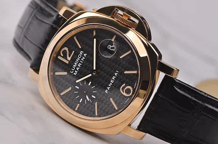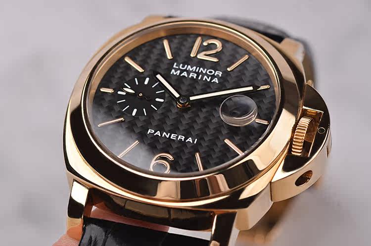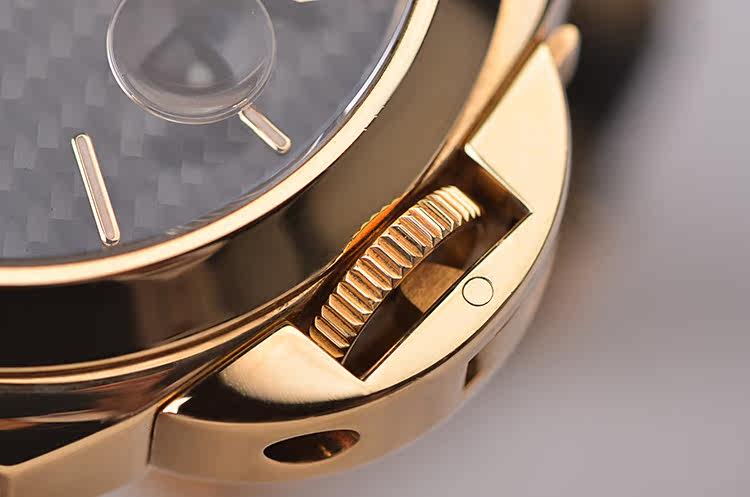 表盘:立体黑色碳纤维编织表盘,黄金夜光刻度及指针