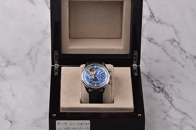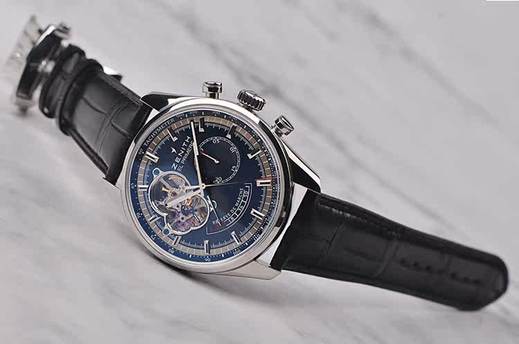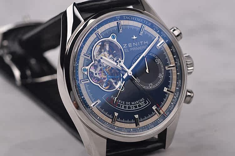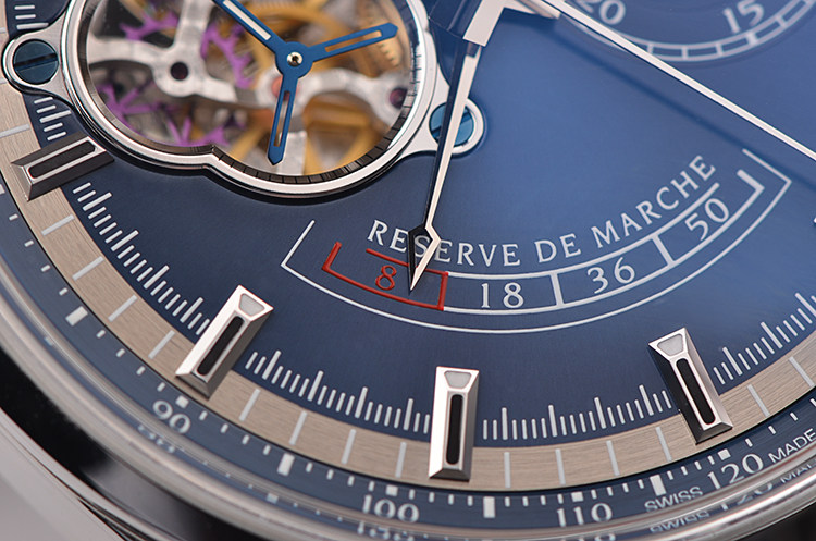 表盘:银立体深蓝色镂空计时表盘,动力储备显示
