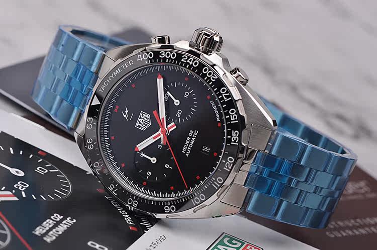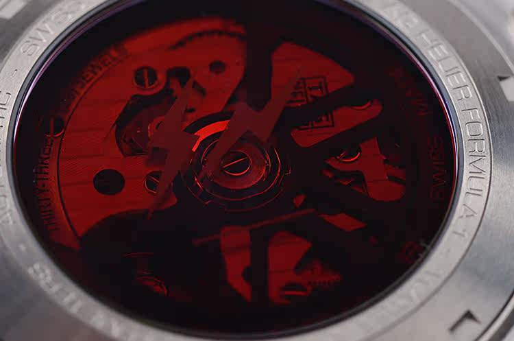 机芯:自动机械CAL.Heuer 02 ,红色蓝宝石背透玻璃,双闪电标识,80小时动力储备
