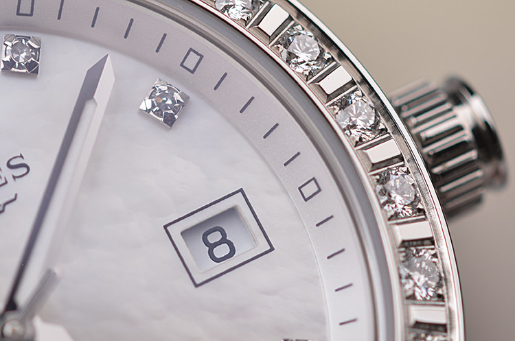 表壳:精钢表壳,表框原厂镶嵌30颗ding级威赛尔顿钻石,共计约0.501克拉。