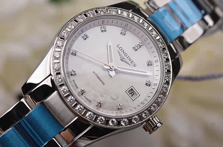 康铂系列精钢镶钻贝母面29.5MM自动机械女表