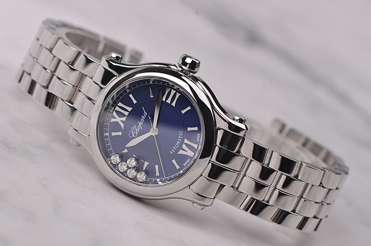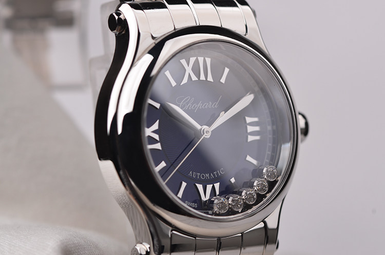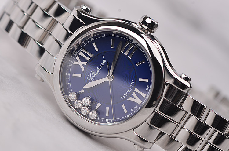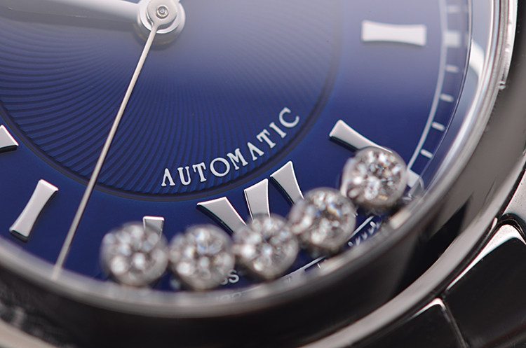 快乐钻系列蓝面5颗活动钻30MM自动机械钢带女表