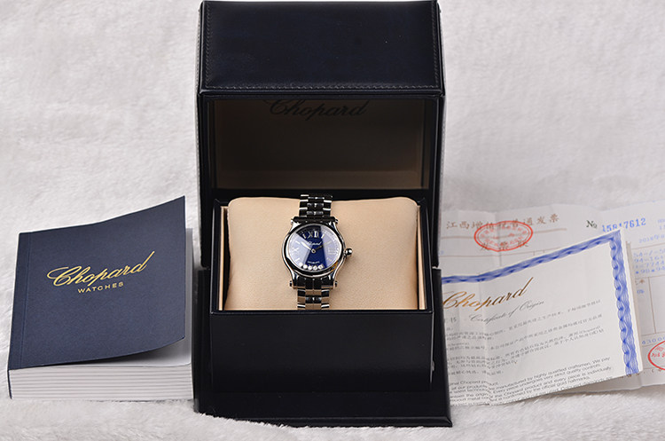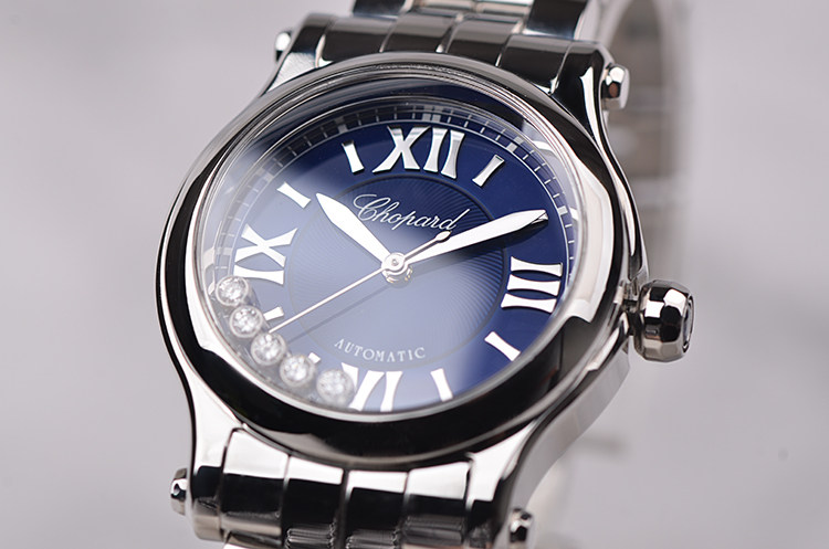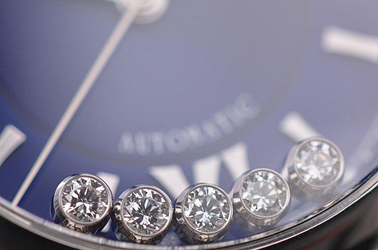 表盘:立体蓝色表盘,五颗活动钻,约0.14克拉
