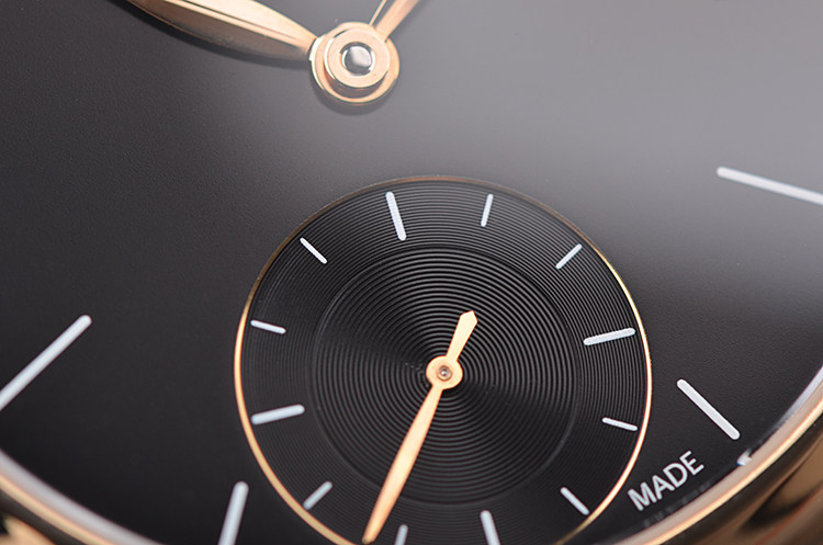黄金黑盘小三针3天动能手上链皮带男表